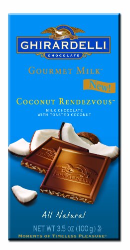 The decadently rich and creamy 32% cacao milk chocolate in Coconut Rendezvous is combined with toasted coconut delivering an epicurean chocolate experience. Savor a moment that will carry you through your day.Ghirardelli Chocolate Gourmet Milk Bar, Coconut Rendezvous, 3.5-Ounce Bars (Pack of 6) Specifications